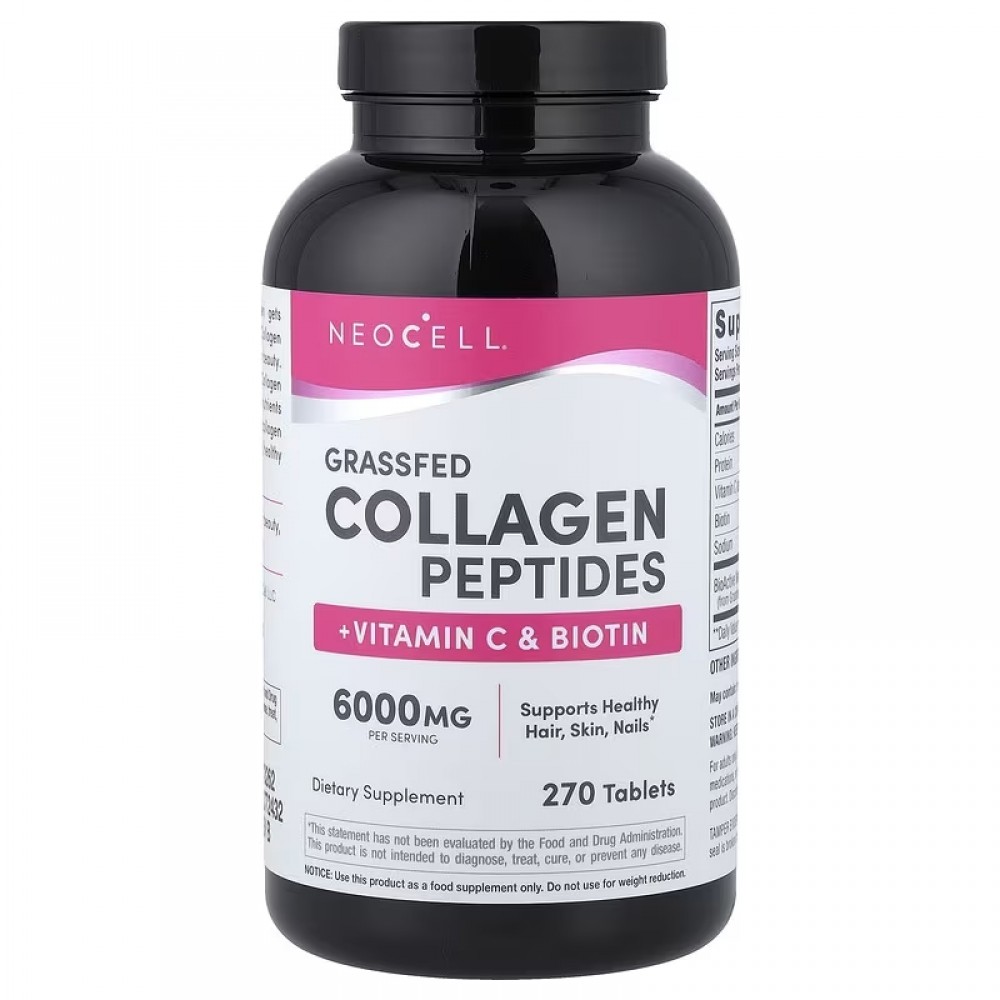Neocell Grassfed Collagen Peptides + Vitamin C & Biotin 270 таблеток, гідролізовані колагенові пептиди