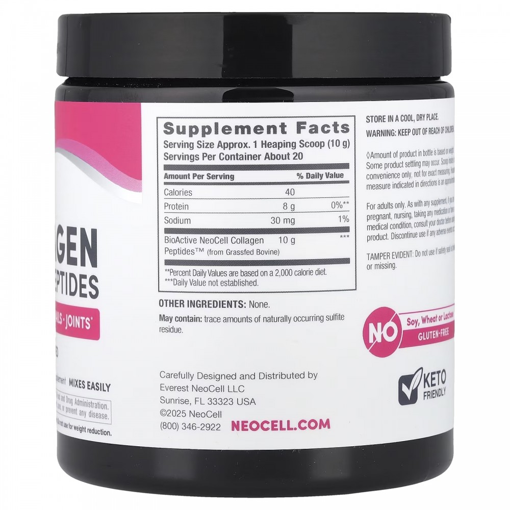 Neocell Grassfed Collagen Peptides 200 грамм, гидролизованный коллаген 1 и 3 типа для здоровья кожи, суставов и связок